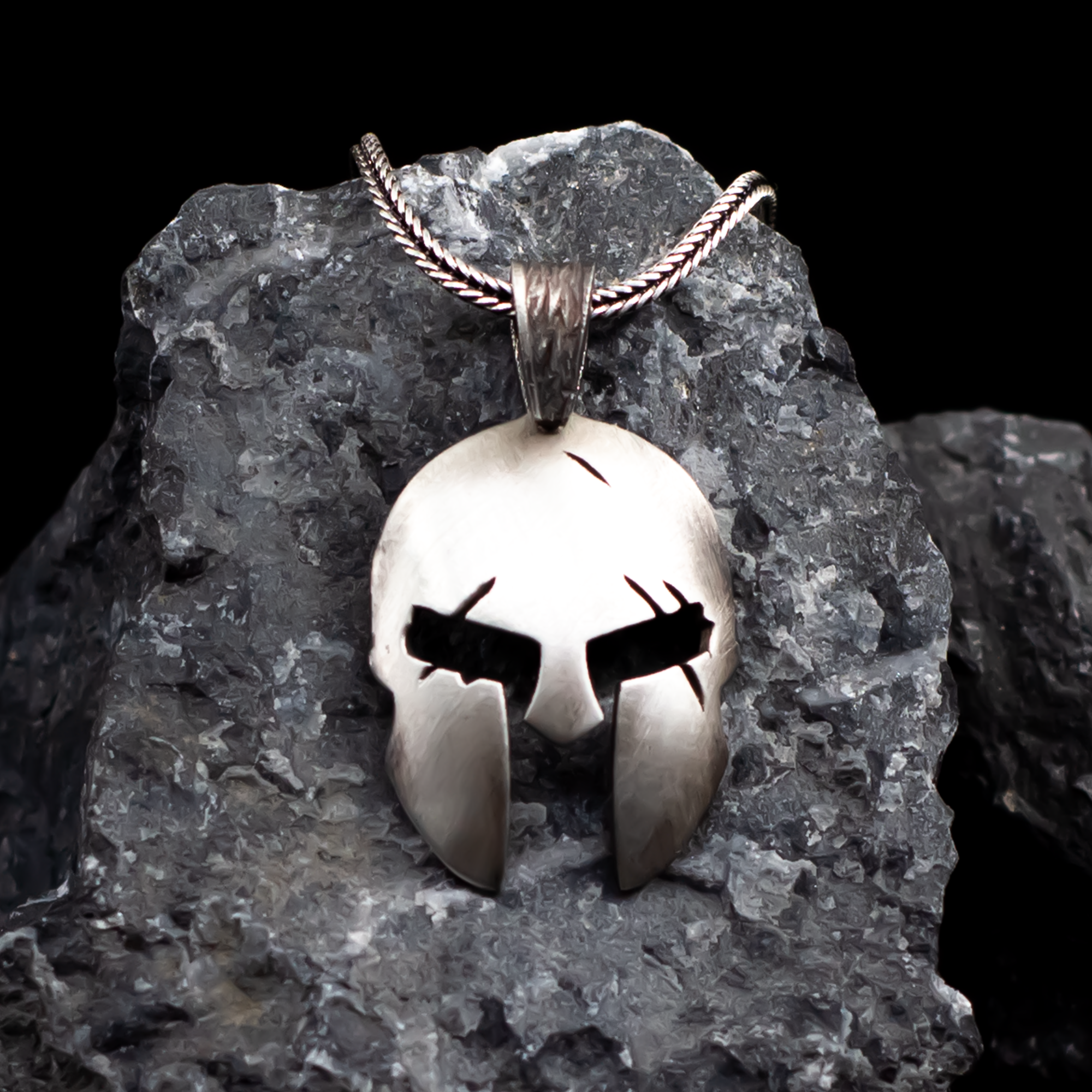 The Battle-Worn Spartan Helmet Pendant - Resilience & Valor