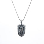 Oxidized Silver Archangel Michael Shield Pendant - Divine Protection Amulet