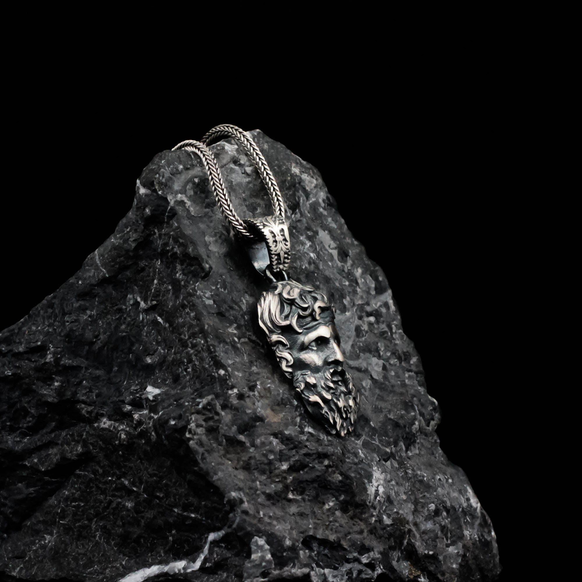• Crafted from genuine 925 Sterling Silver; finished with a deep, rugged oxidation to accentuate the intricate hair, beard texture, and powerful gaze.